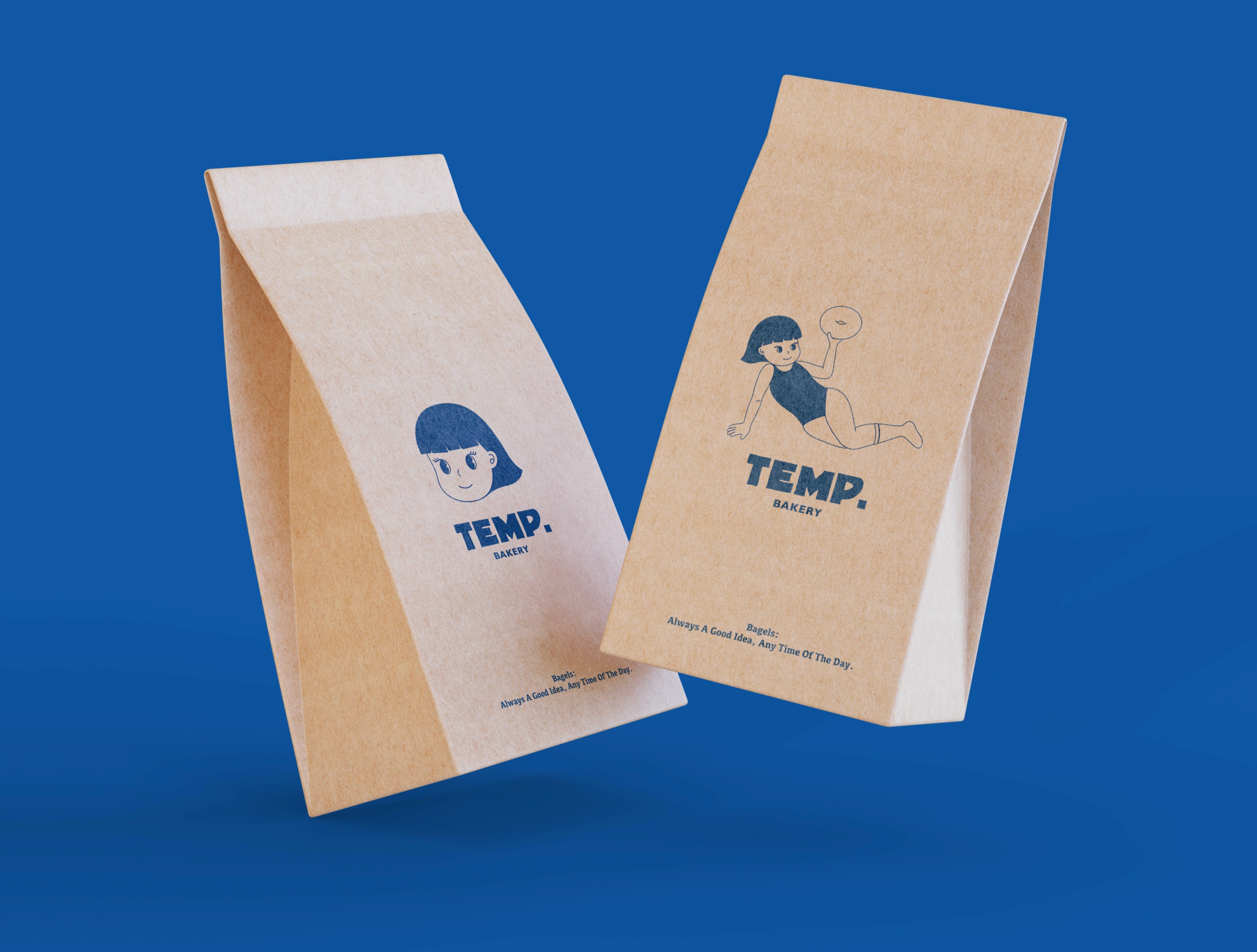 The primary visual identity features a charming and confident girl, who serves as the brand’s emotional vehicle, embodying a positive and unrestricted approach to life. This image is designed to instill deep emotional value in the customer, conveying a gentle encouragement and self-affirmation: "No matter your mood, a bagel is always a great choice to end the day and re-energize, anytime, anywhere." Through this assured visual presence, the brand establishes a reliable and positive emotional connection within the customer's routine, transforming Temp Bakery from a mere food item into a definitive lifestyle choice.